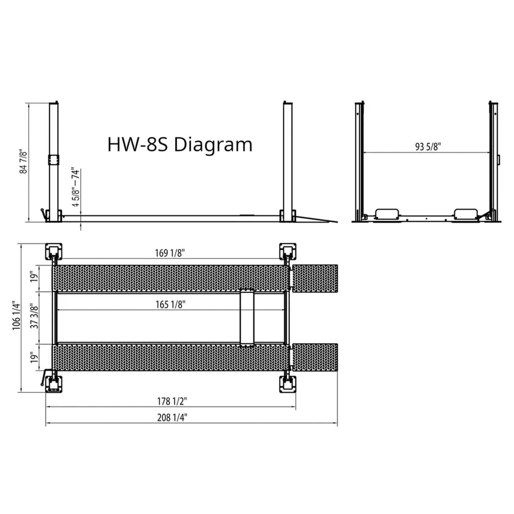 • HW-8S Model Overall Dimensions: 178"L x 106"W x 84"H